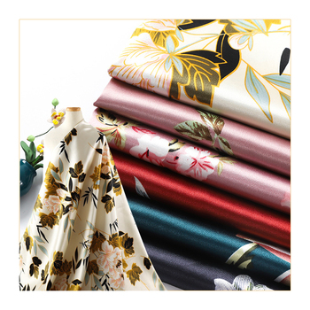Nuevo estilo de poliéster marca de agua satén 50D 75D tela de satén elástica tela de satén de impresión digital para Pijamas